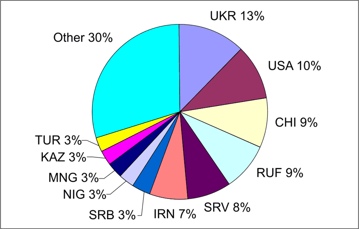 | Ex-Yugoslavia (Serbia, Montenegro) | 9.37% |